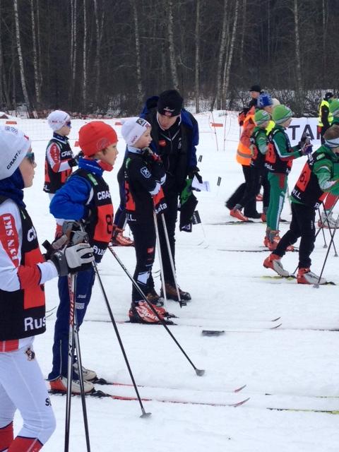 Trener Roger Nordby deler oppmuntrende ord før start i klasse J/G 10 år.